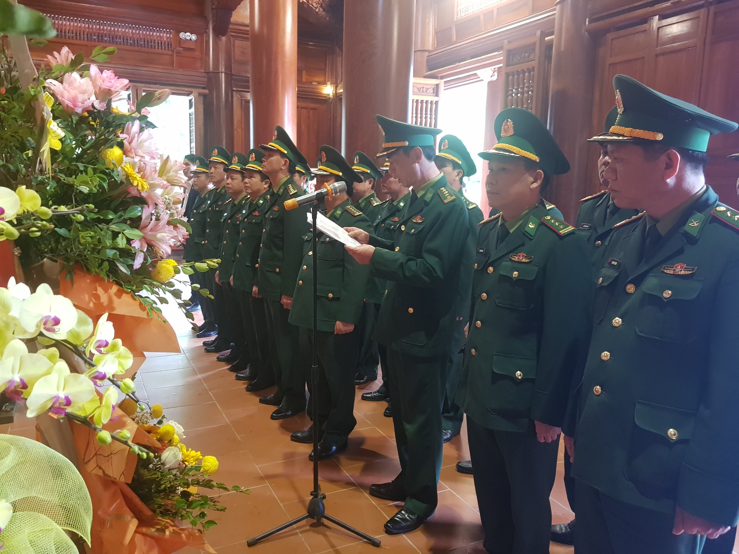 Đoàn đại biểu bày tỏ lòng biết ơn và kính trọng sâu sắc đối với Chủ tịch Hồ Chí Minh, lãnh tụ vĩ đại của Đảng và nhân dân ta, Người đã sáng lập, rèn luyện quân đội Việt Nam anh hùng.