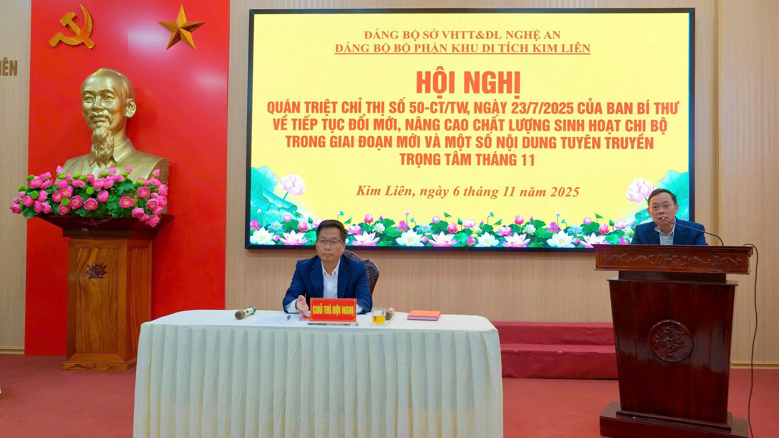 Ngày 06 tháng 11 năm 2025, Đảng bộ bộ phận Khu di tích Kim Liên đã tổ chức quán triệt, triền khai thực hiện Chỉ thị 50 CT/TW ngày 23/7/2025 và Kế hoạch số 59-KH/ĐU ngày 20 /10/ 2025 của Đảng ủy Sở VHTTDL về thực hiện chỉ thị số 50 – CT/TW.