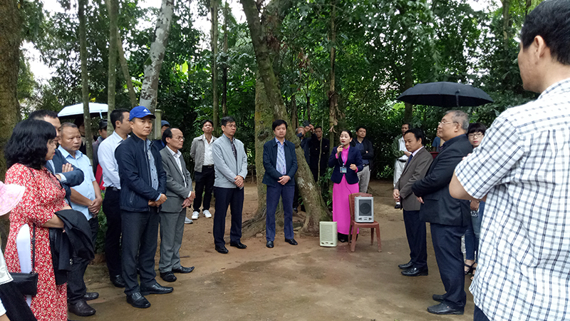 Đoàn đi tham quan và nghe thuyết minh tại di tích Làng Sen