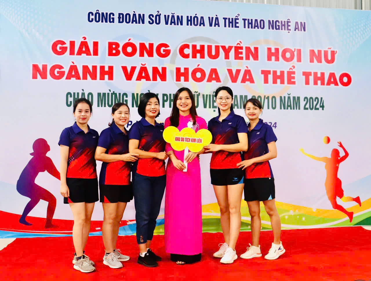 Buổi chiều cùng ngày, Ban Nữ công đã tổ chức buổi giao lưu bóng chuyền hơi giữa liên quân các phòng ban trong cơ quan, diễn ra sôi nổi và đầy hứng khởi tại sân bóng chuyền công sở. Trước đó, đội bóng chuyền hơi nữ Khu Di tích Kim Liên đã tích cực tham gia giải bóng chuyền hơi do Sở Văn hóa và Thể thao Nghệ An tổ chức từ ngày 10 đến 12/10, với sự tham gia của đơn vị Văn phòng Sở và các cơ quan trực thuộc. Kết thúc giải đấu, đội bóng chuyền Khu Di tích Kim Liên đã giành giải đội Fair Play.