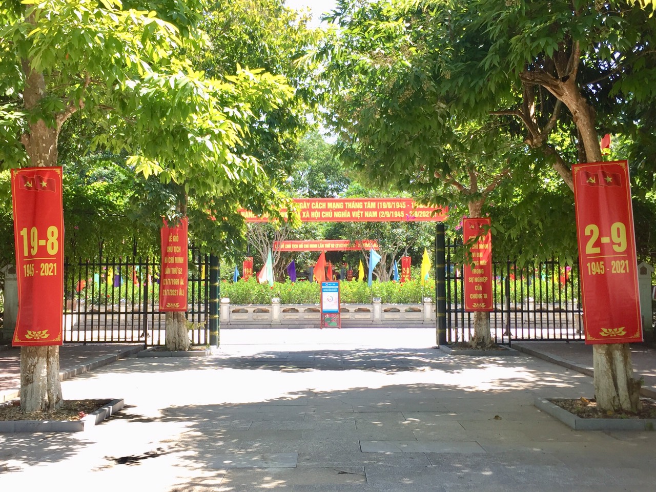 Tuyên truyền các ngày lễ lớn tại cổng khu trưng bày, Khu di tích Kim Liên