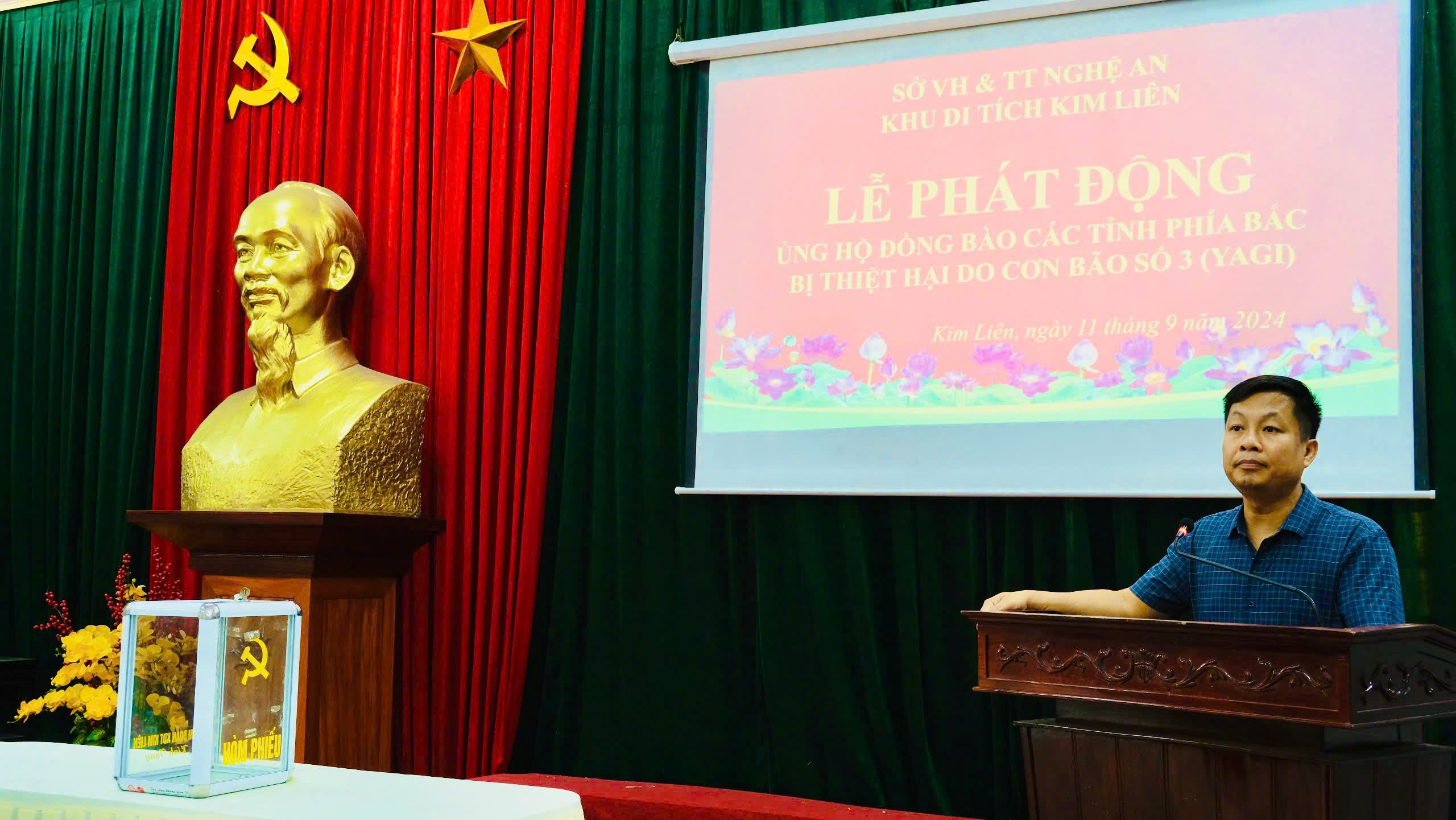 Chiều ngày 11 tháng 9 năm 2024, tại Hội trường Trung tâm Dữ liệu Khu di tích Kim Liên đã phát động viên chức và người lao động ủng hộ Nhân dân khắc phục hậu quả thiên tai, bão lũ.