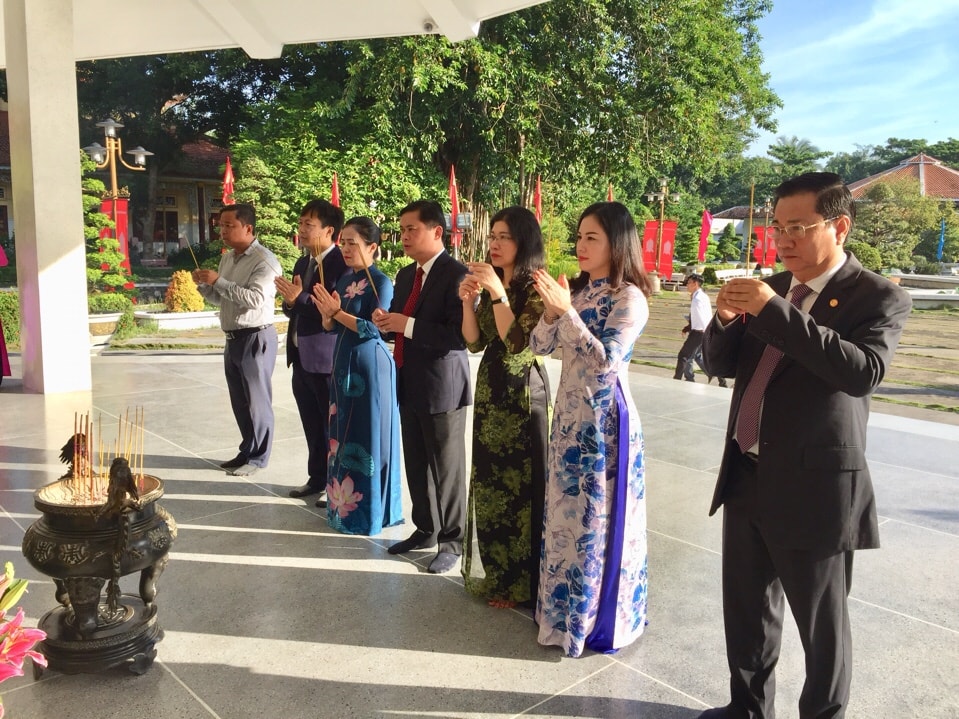 Tại buổi lễ, các đồng chí lãnh đạo tỉnh đã dâng hương tưởng niệm ông Phó bảng Nguyễn Sinh Sắc, bày tỏ lòng thành kính sâu sắc trước cuộc đời và tấm lòng yêu nước, thương dân của thân phụ Chủ tịch Hồ Chí Minh.