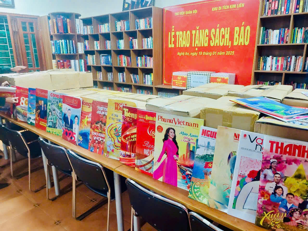 Với mong muốn làm phong phú thêm kho tàng sách báo và nâng cao chất lượng phục vụ bạn đọc, tại buổi lễ, Thư viện Quân đội đã trao tặng gần 1.200 đầu sách, với tổng cộng gần 1.400 cuốn sách và 26 loại báo, tạp chí Xuân Ất Tỵ 2025. Số đầu sách, báo được trao tặng lần này bao gồm các lĩnh vực như: Chủ tịch Hồ Chí Minh, quân sự, quốc phòng, pháp luật, văn học, kỹ thuật và về quê hương, con người, đất nước Việt Nam tươi đẹp…
