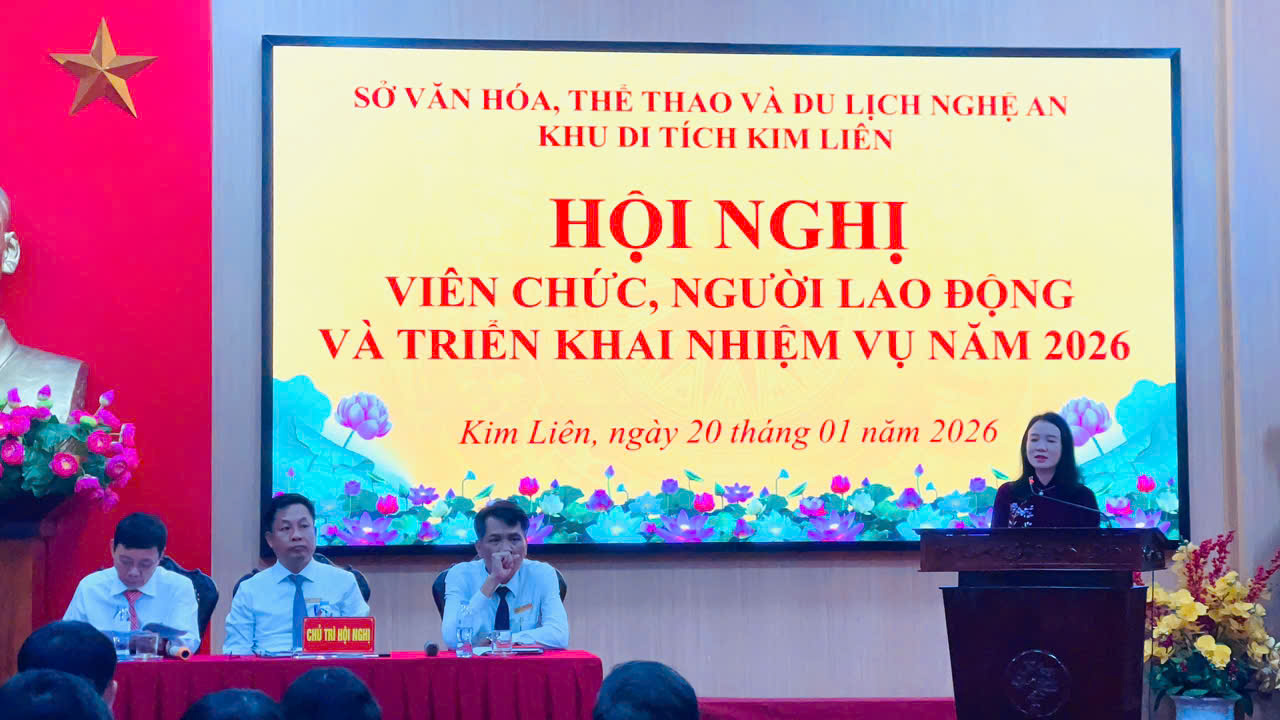 Chiều ngày 20/01/2026, tại Hội trường Khu di tích Kim Liên đã tổ chức Hội nghị Viên chức, Người lao động năm 2026. Hội nghị do đồng chí Nguyễn Bảo Tuấn, Giám đốc Khu di tích Kim Liên; đồng chí Hà Văn Vinh – Phó Giám đốc; đồng chí Lâm Đình Hùng – Phó Giám đốc đồng chủ trì.