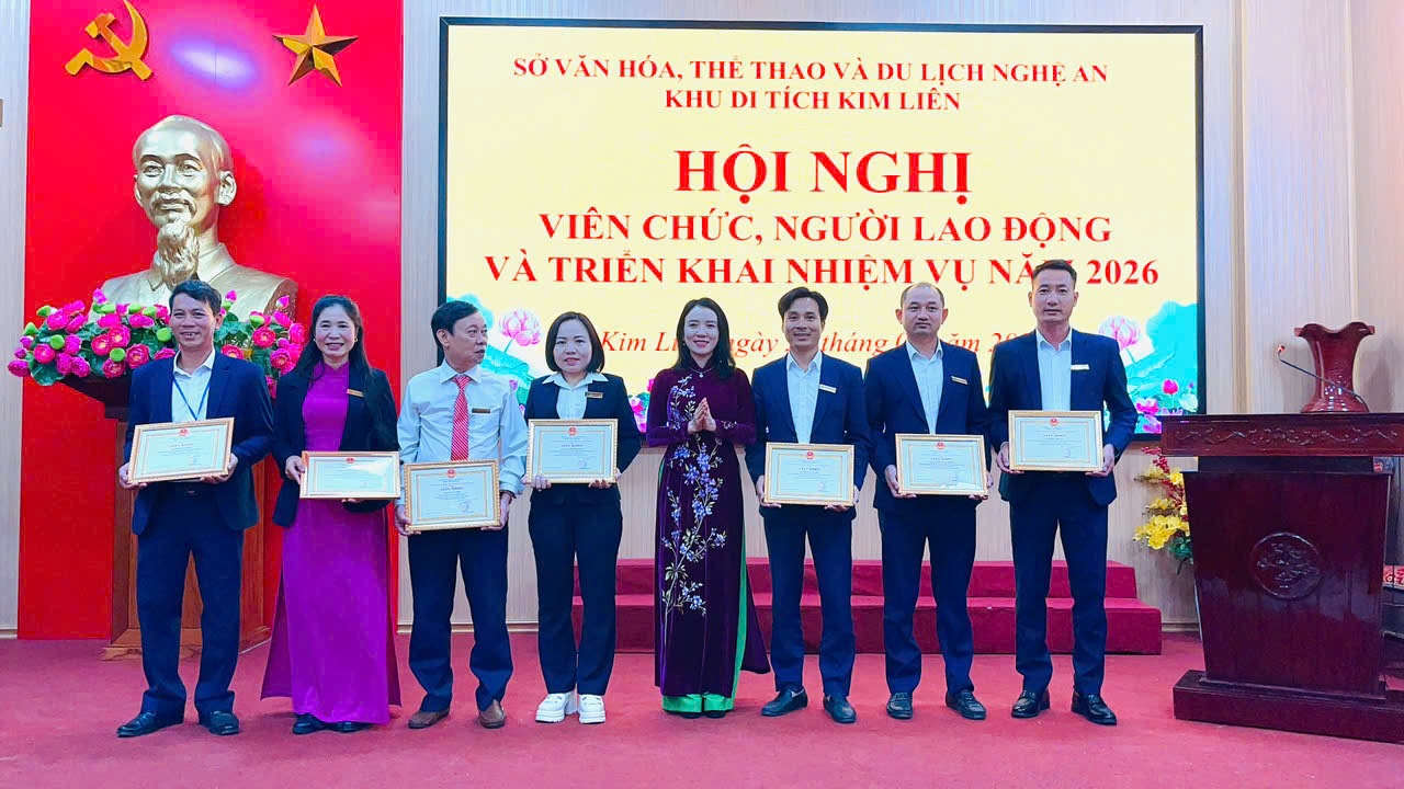Nhân dịp này, Khu di tích Kim Liên đã công bố các quyết định khen thưởng cho các tập thể, cá nhân đạt thành tích xuất sắc năm 2025 và phát động phong trào thi đua yêu nước năm 2026. Hội nghị kết thúc với việc biểu quyết thông qua Nghị quyết Hội nghị Viên chức, Người lao động năm 2026, thể hiện sự thống nhất và quyết tâm cao của tập thể đơn vị trong việc thực hiện nhiệm vụ được giao.