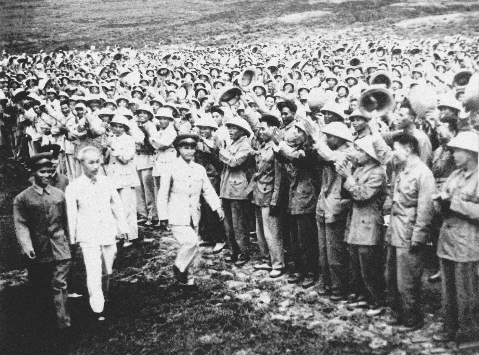 Chủ tịch Hồ Chí Minh thăm bộ đội miền Nam tập kết đang huấn luyện tại tỉnh Nghệ An (6-1957).