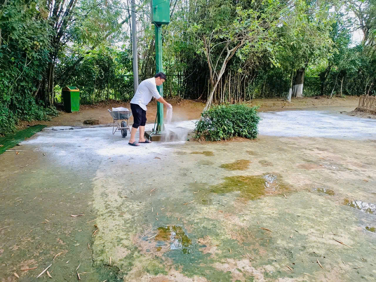 Ngày làm việc của họ thường bắt đầu khi khu di tích còn chìm trong sự tĩnh lặng của buổi sớm mai. Trong làn sương mỏng của vùng quê xứ Nghệ, khi mặt trời còn chưa lên hẳn, các anh chị đã có mặt tại những điểm di tích quen thuộc. Tiếng chổi tre khẽ quét trên lối đi, tiếng bước chân nhẹ nhàng giữa những hàng cây xanh, tất cả diễn ra lặng lẽ nhưng đầy trách nhiệm.