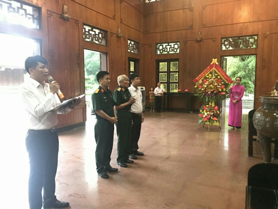 Trung tướng Nguyễn Quốc Thước chụp ảnh lưu niệm với lãnh đạo Khu di tích Kim Liên