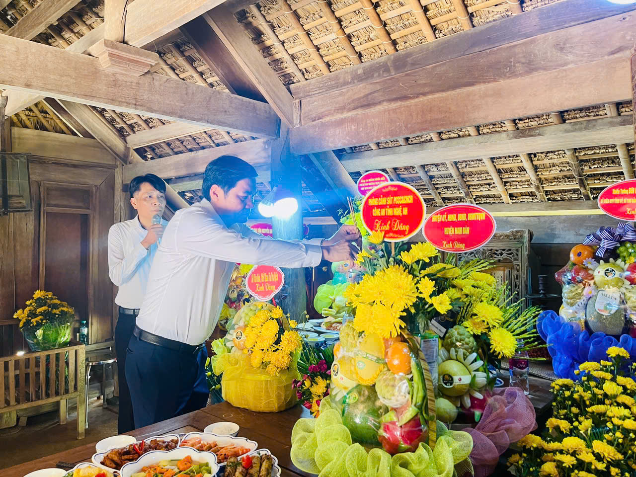 Về phía huyện Nam Đàn có các Đ/c: Nguyễn Xuân Đức – Uỷ viên ban chấp hành Đảng bộ tỉnh, Bí thư Huyện uỷ, cùng các Đ/c trong BTV Huyện ủy, đại diện các Ban, phòng, ngành, các tổ chức đoàn thể huyện, đại diện xã Kim Liên, dòng họ Nguyễn Sinh, Hoàng Xuân; cán bộ viên chức KDT Kim Liên, đông đảo bà con nhân dân và du khách thập phương về tham dự.