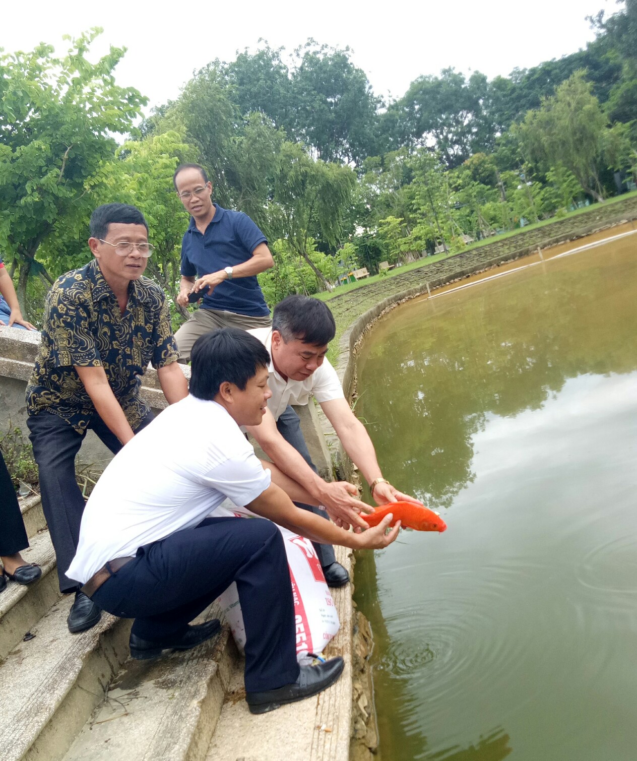 Lãnh đạo hai đơn vị cùng nhau thả cá chép vàng